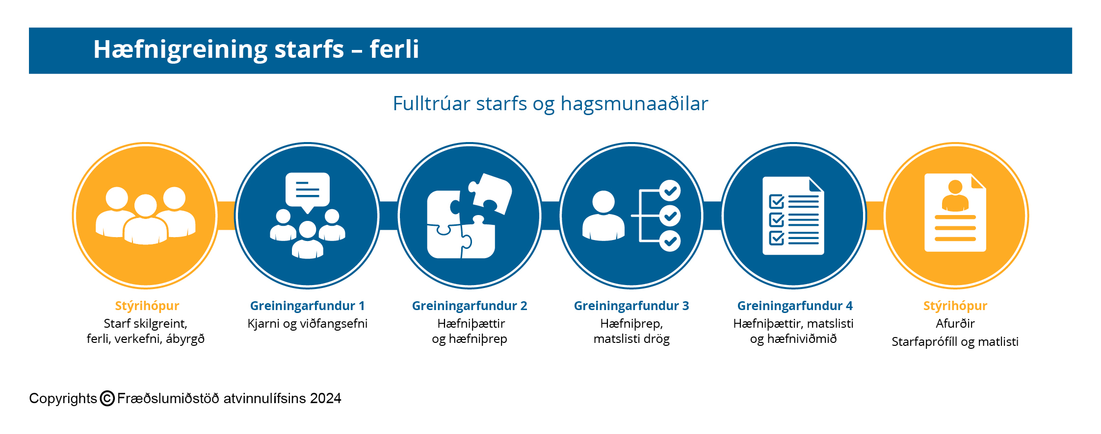 Ávallt er fylgt skilgreindu ferli við hæfnigreiningu samkvæmt eftirfarandi yfirlitsmynd: