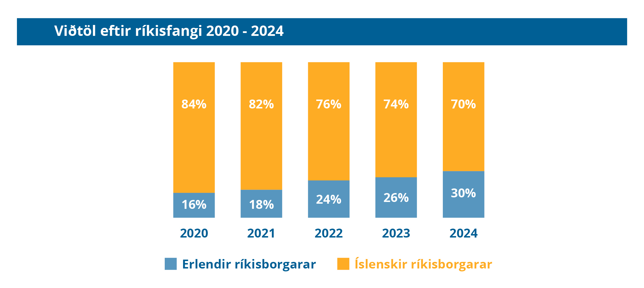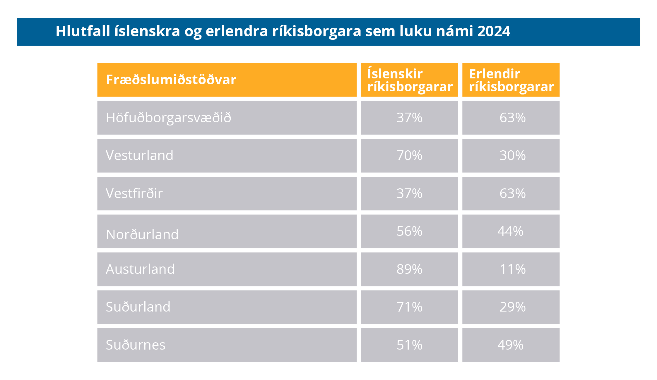 Fjöldi einstaklinga með erlent ríkisfang heldur áfram aukast hjá framhaldsfræðslunni og voru 51% þeirra sem luku námi árið 2024.