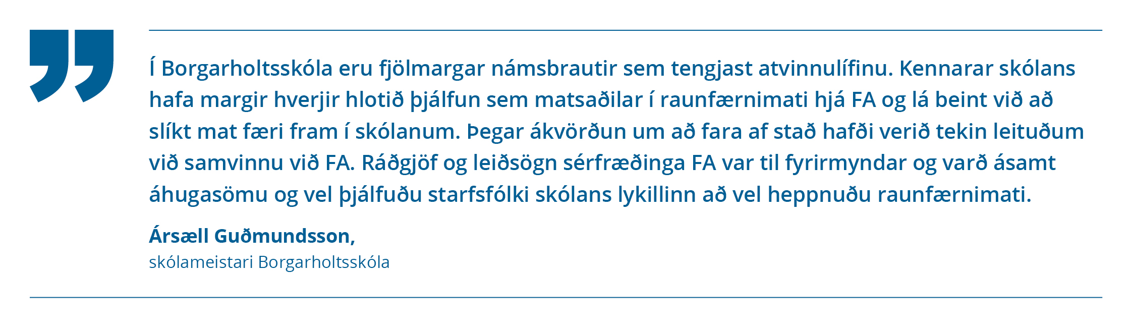 FA var einnig í samstarfi við Borgarholtsskóla vegna innleiðingar raunfærnimats á vegum skólans. Samstarfi fólst í ráðgjöf við mótun ferlisins og þjálfun matsaðila fyrir framkvæmd. Framkvæmd tilraunarinnar gekk vel og fengu þátttakendur sambærilegt mat og á vettvangi framhaldsfræðslunnar. Borgarholtsskóli hefur haldið áfram að auglýsa ferlið og bjóða væntanlegum nemendum upp á raunfærnimat.