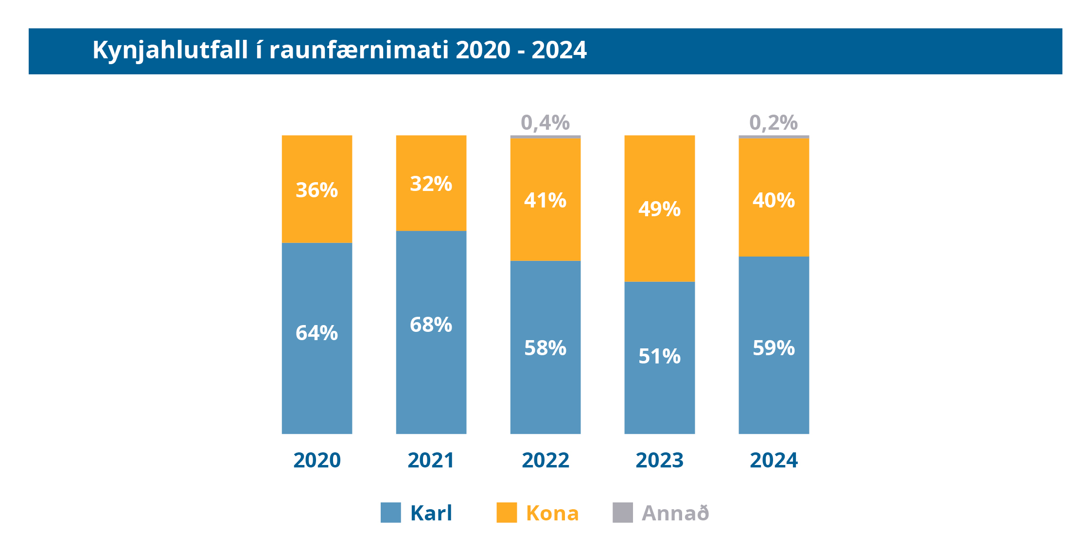 Karlar eru í meirihluta þeirra sem luku raunfærnimati 2024 rétt eins og síðustu ár, sem skýrist af því að þeir eru í meirihluta þeirra sem ljúka mati í löggildum iðngreinum.