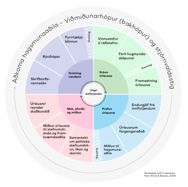 Í verkefninu var byggt á hugmyndafræði hönnunarhugsunar (sjá mynd hér fyrir neðan) og er yfirfæranlegt í vinnu með öðrum markhópum.